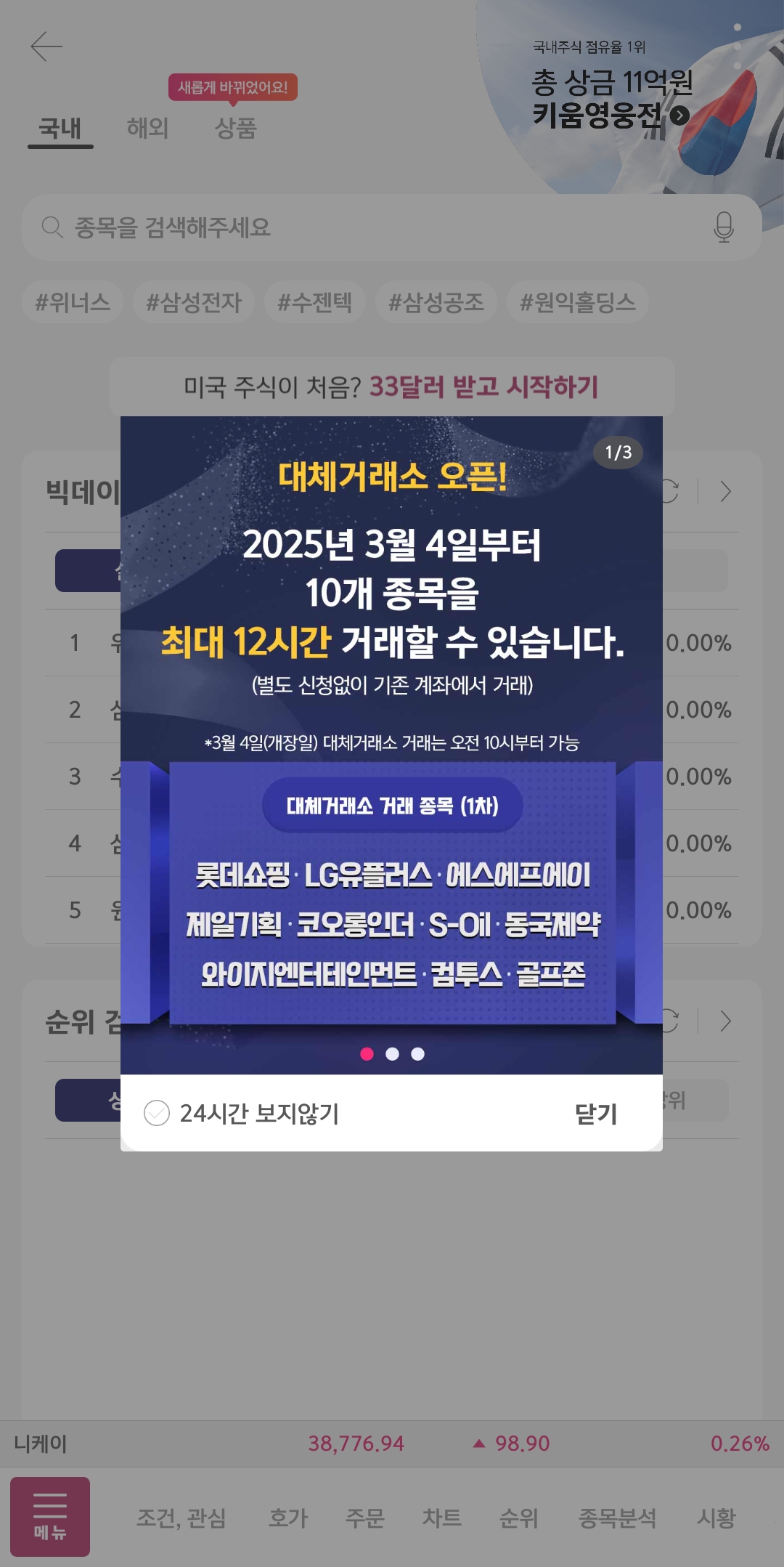 ✔넥스트레이드가 시행되는 3월 첫째주는 과감한 투자보다 시장 반응을 살핀 후 신중한 매매 하시기를 추천합니다.