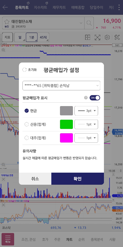 - '평균매입가 표시' 옵션을 활성화