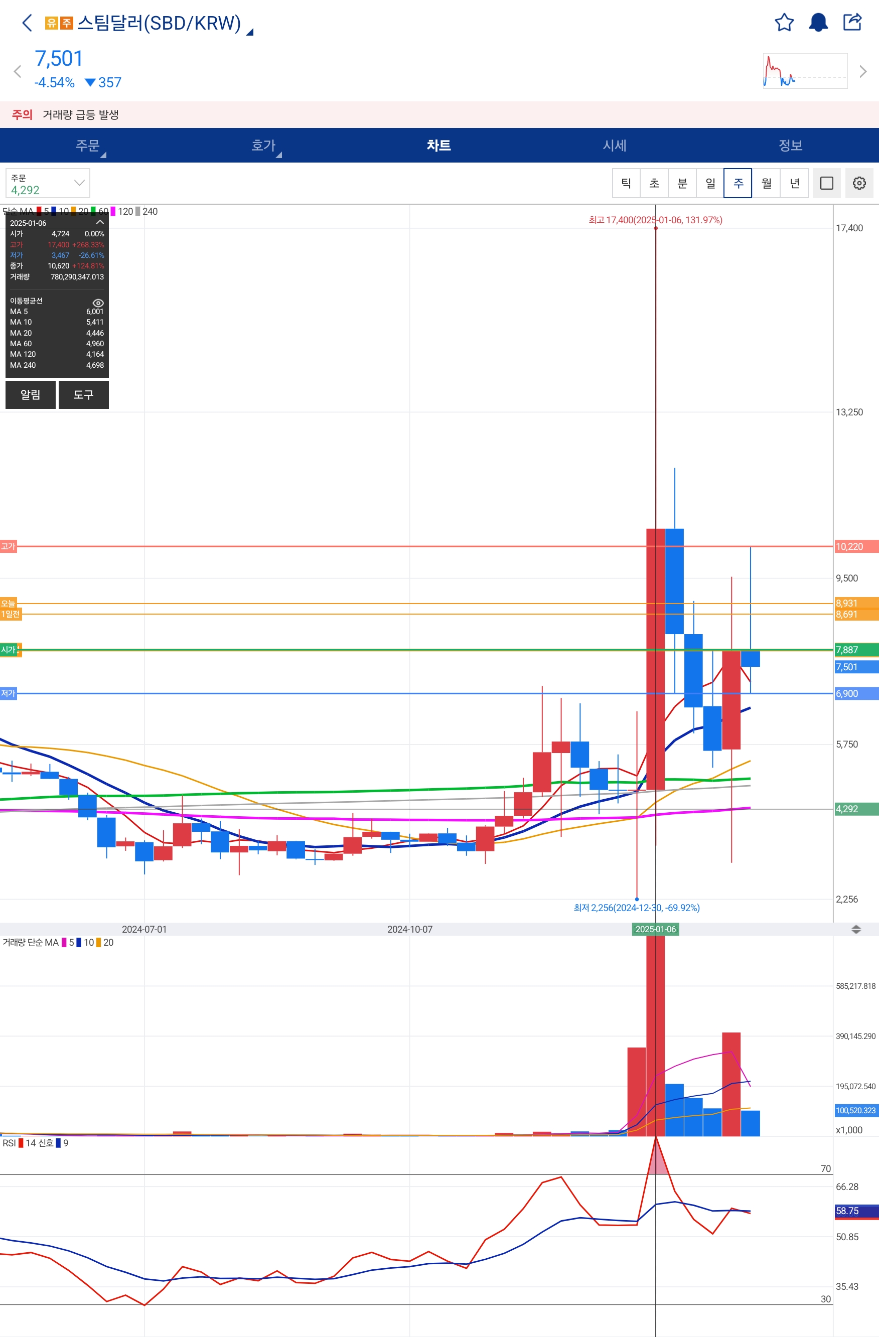 ✔ 거래량 급증: 마지막 기회를 노린 투자자들이 몰리면서 거래량이 폭증